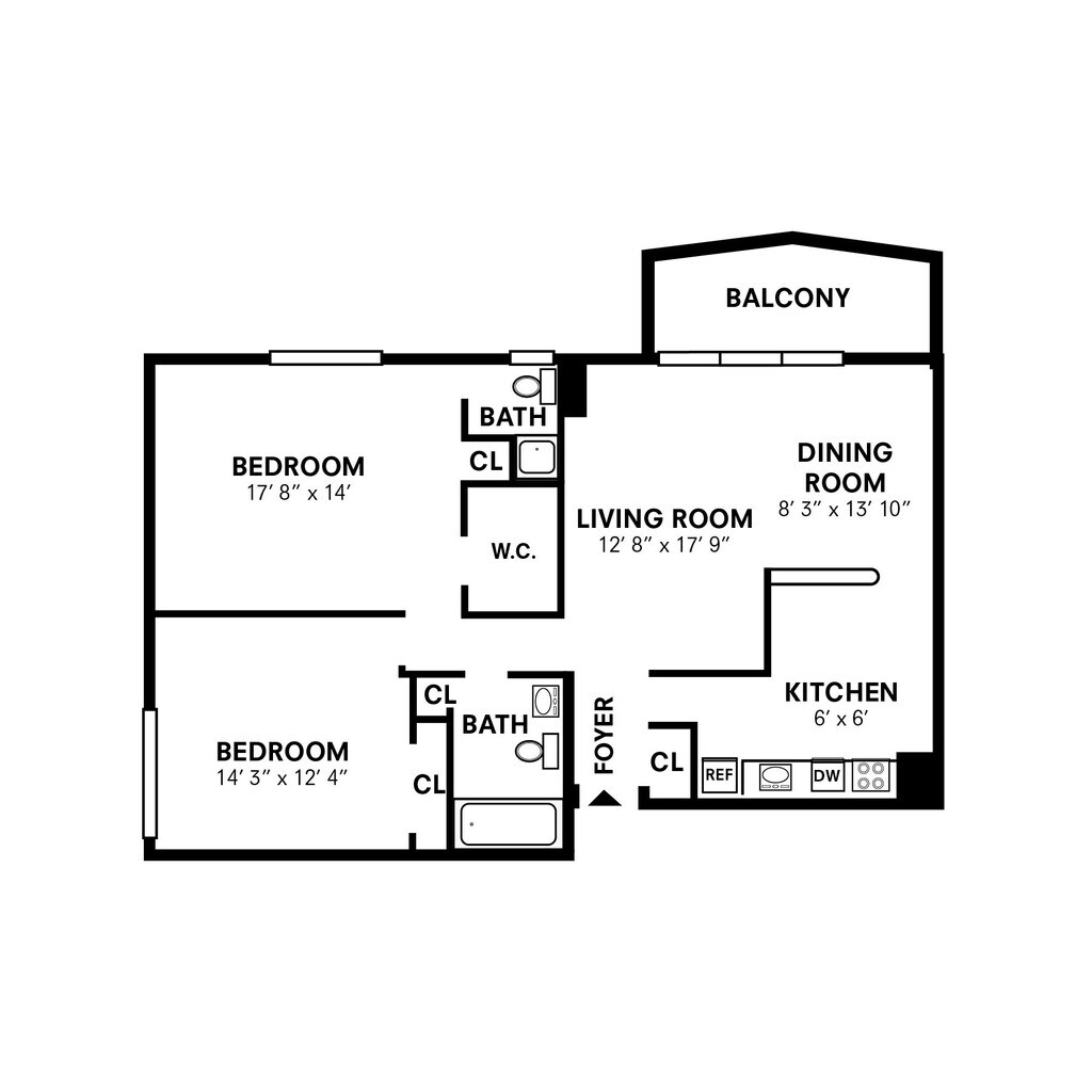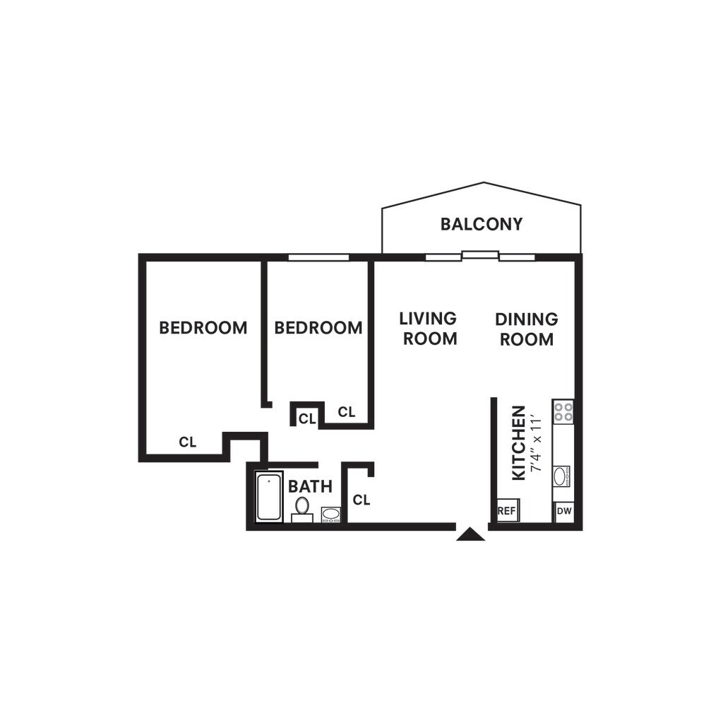 One Bedroom - 580 sqft - Plano 7 2 Dormitorios