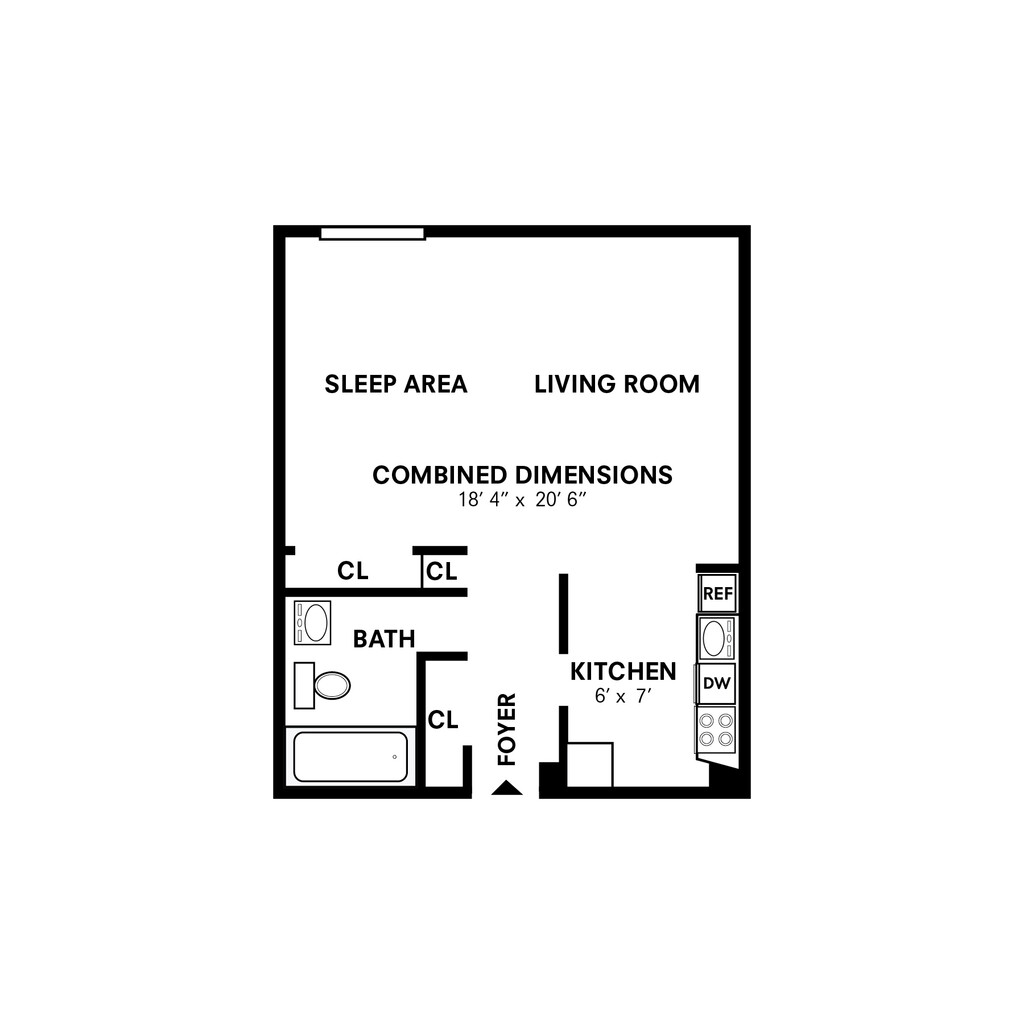 Studio - 460 sqft - Plano 2 1 Dormitorio