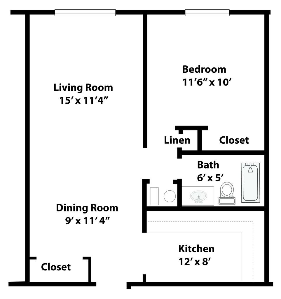 Modelo de apartamento: 1 Bedroom and 1 Bath$7501 Dormitorio, 1 Baño, 750 sq ftDisponible Ahora![]()