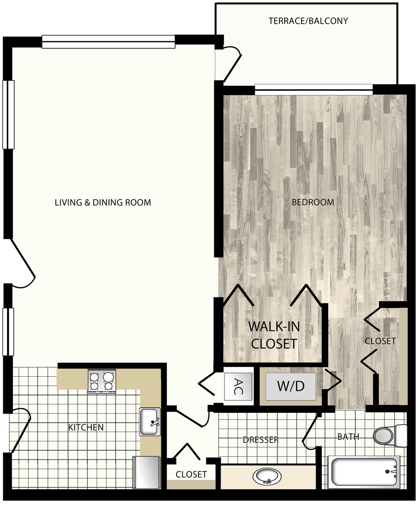 1 Dormitorio, 1 Baño, 774-829 pies²Disponible AhoraGalería del Modelo