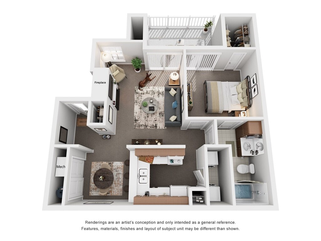 1 Dormitorio, 1 Baño, 750 pies²Disponible Mar 16Galería del Modelo