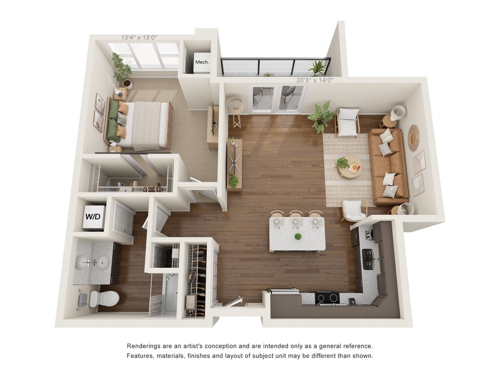 1 Dormitorio, 1 Baño, 858 pies²Disponible May 1Galería del Modelo