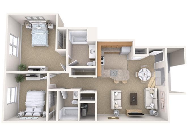 2 Dormitorios, 2 Baños, 949 pies²Disponible AhoraGalería del Modelo