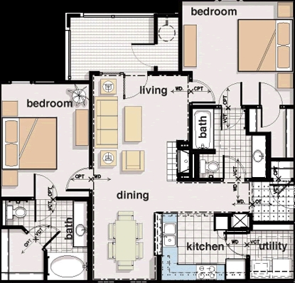 2 Dormitorios, 2 Baños, 1069 pies²Detalles de Diponibilidad