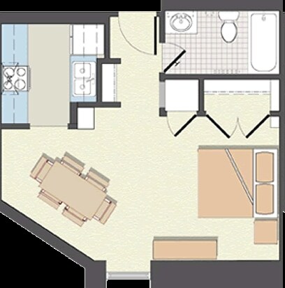 1 Dormitorio, 1 Baño, 536-727 pies²Detalles de Diponibilidad