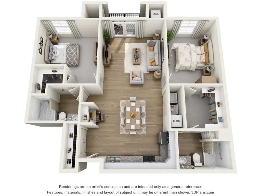 Modelo de apartamento: A1DDesde $1,3851 Dormitorio, 1 Baño, 764 sq ftDisponible Ahora![]()