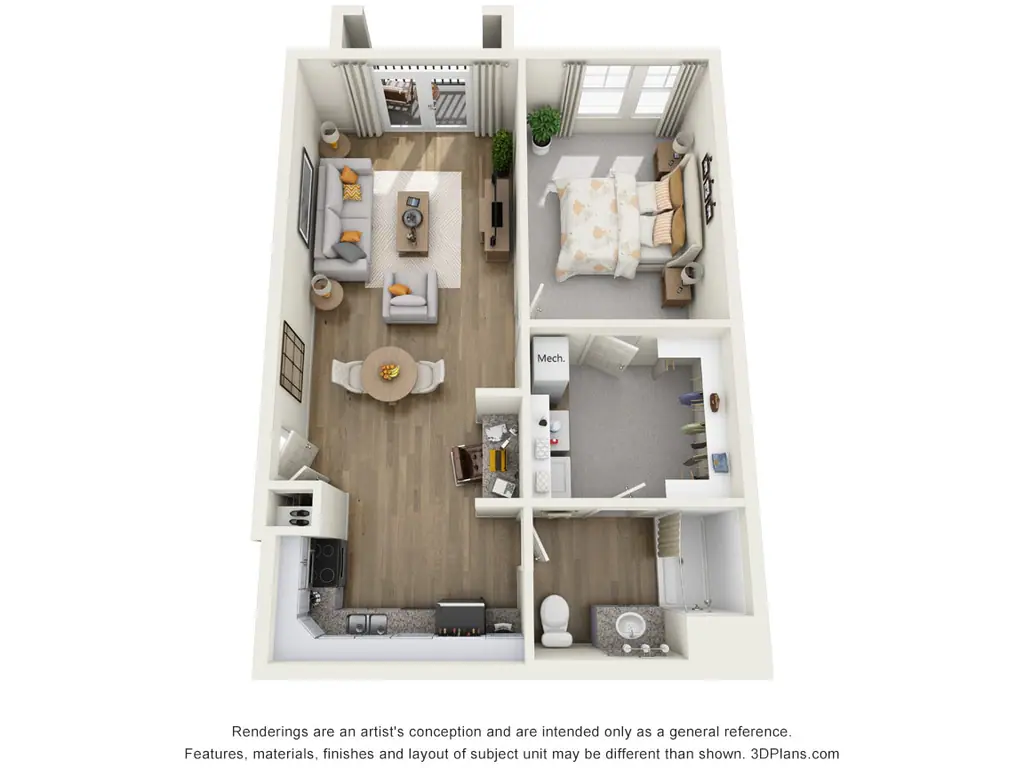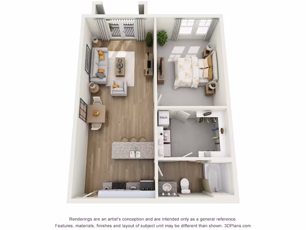 1 Dormitorio, 1 Baño, 764 pies²Disponible AhoraGalería del Modelo