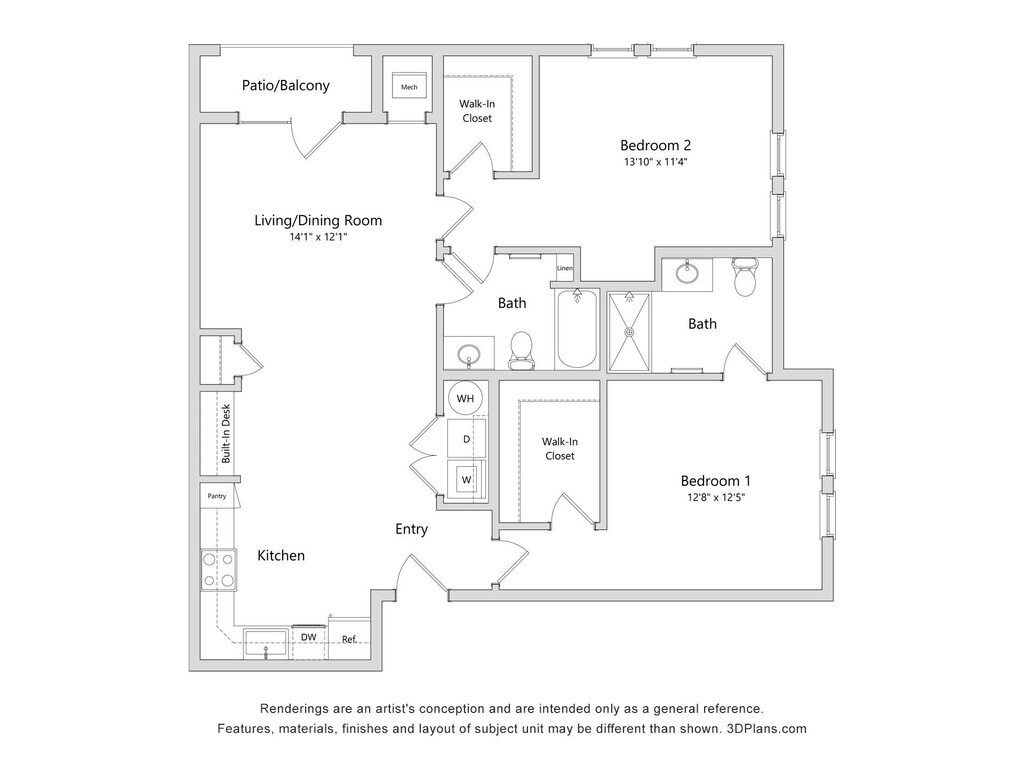 Modelo de apartamento: CedarDesde $1,3401 Dormitorio, 1 Baño, 765 sq ftDisponible Ahora![]()