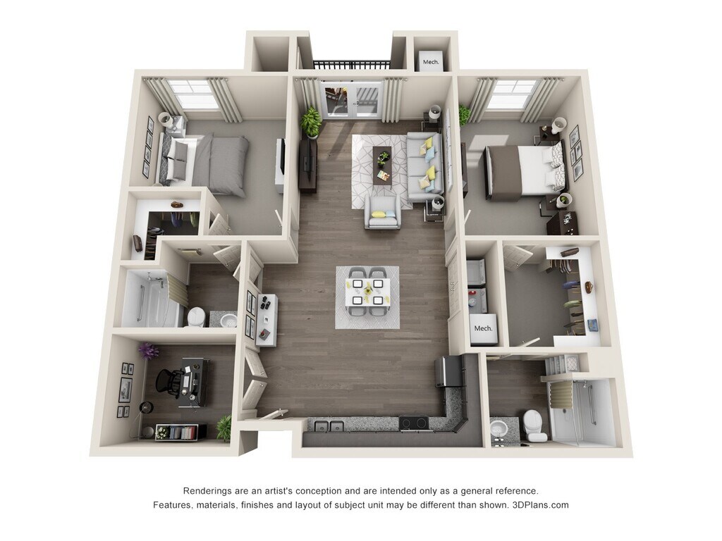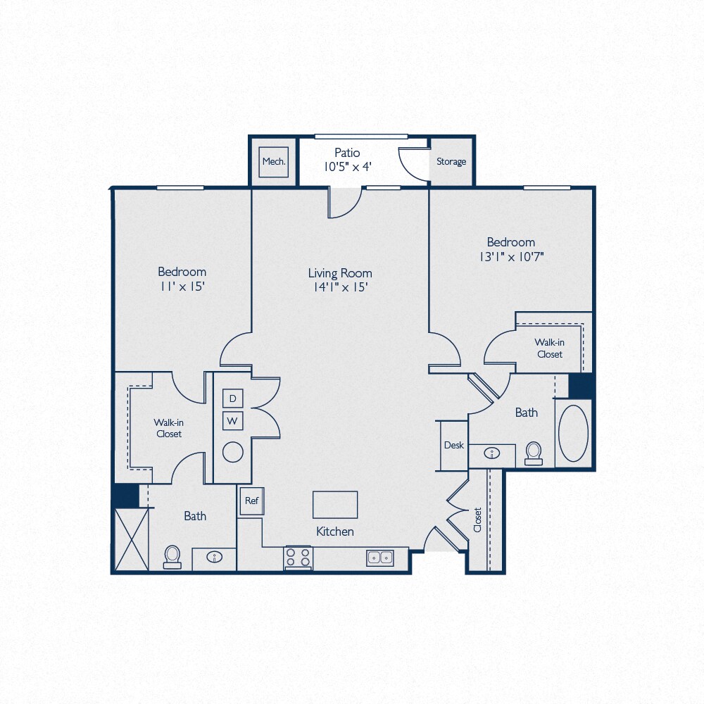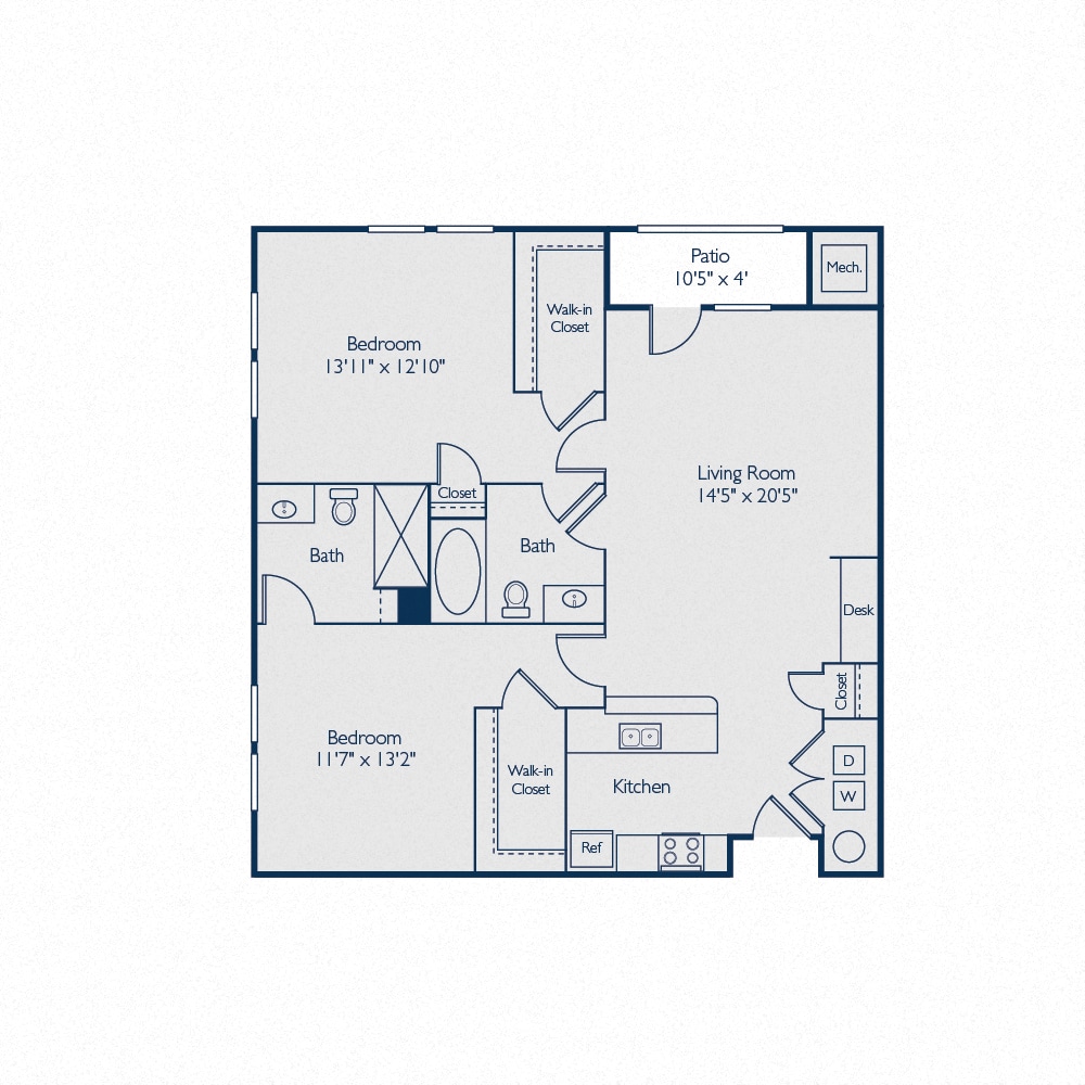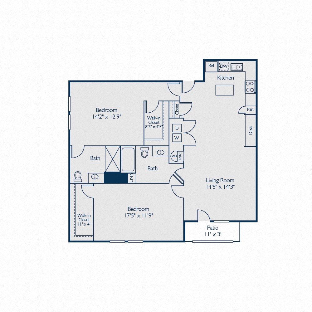 Modelo de apartamento: A1EDesde $1,1901 Dormitorio, 1 Baño, 732 sq ftDisponible Ahora![]()