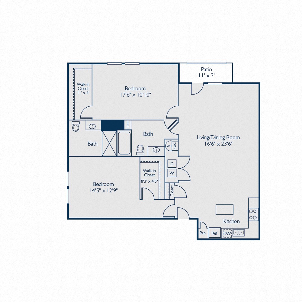 Modelo de apartamento: A1DDesde $1,2101 Dormitorio, 1 Baño, 724 sq ftDisponible Ahora![]()