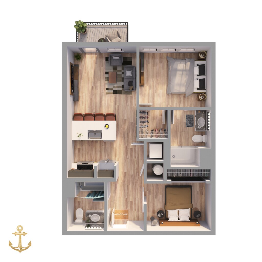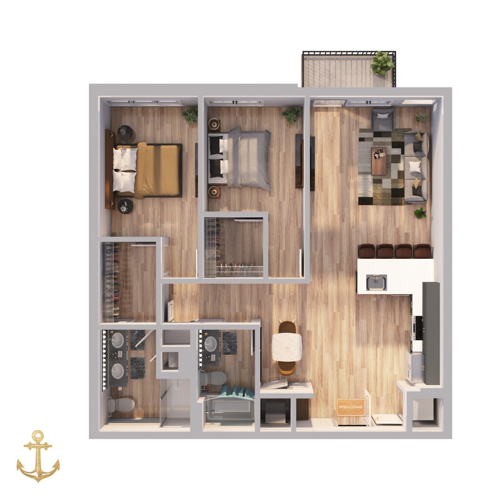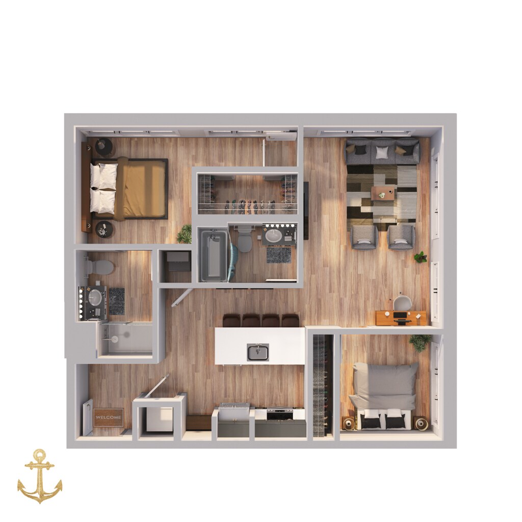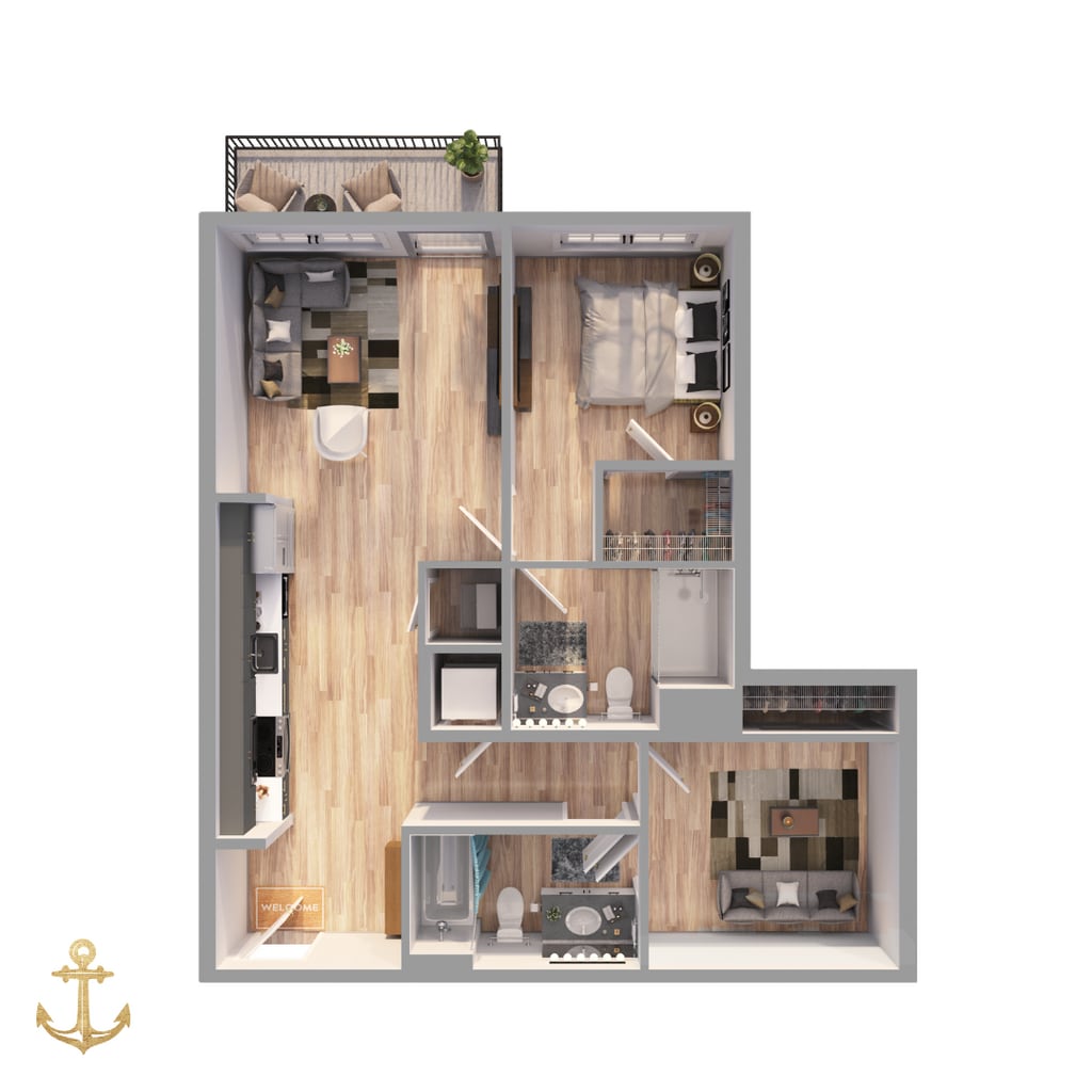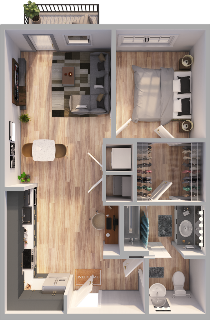 1 Dormitorio, 1.5 Baños, 743 pies²Disponible AhoraGalería del Modelo