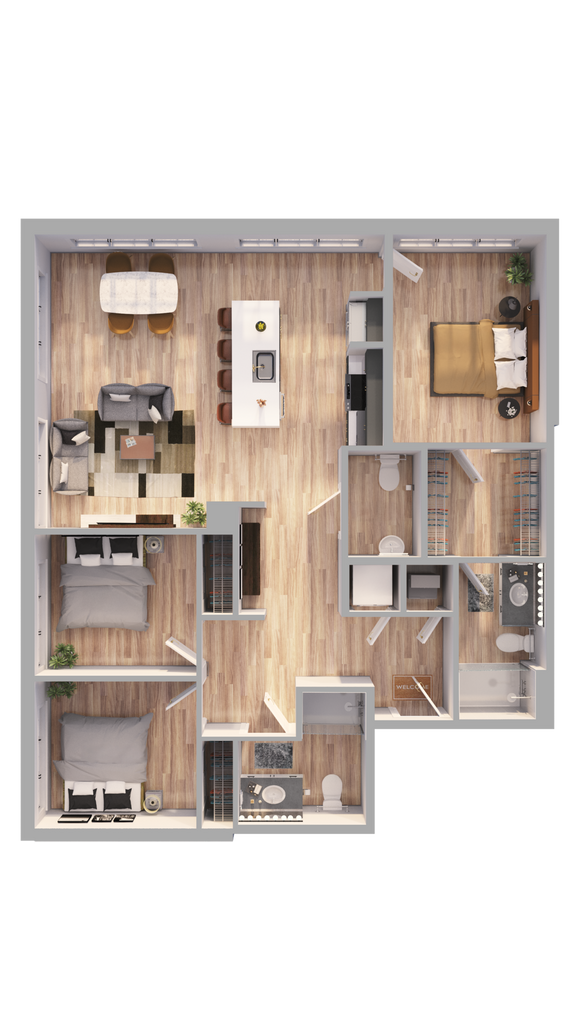Modelo de apartamento: A4Desde $1,6201 Dormitorio, 1.5 Baños, 748 sq ftDisponible Ahora![]()