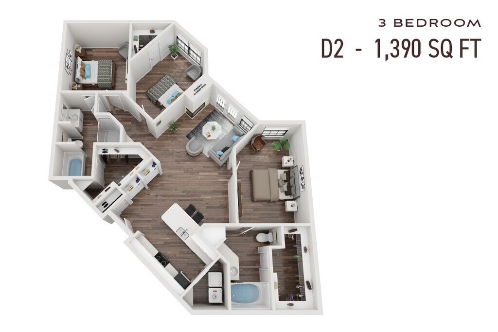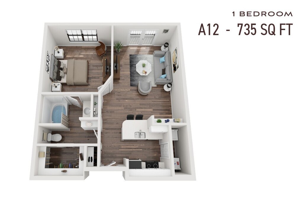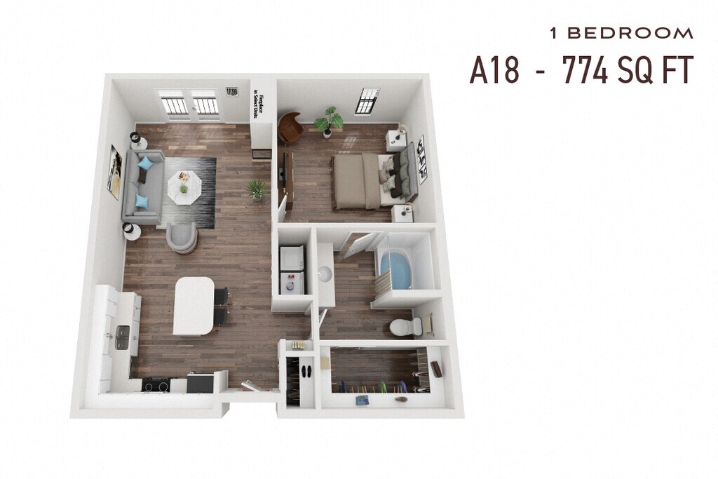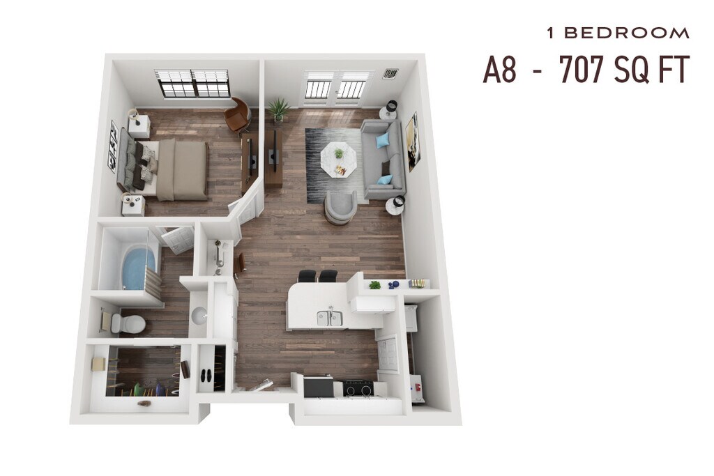 1 Dormitorio, 1 Baño, 707 pies²Disponible AhoraGalería del Modelo