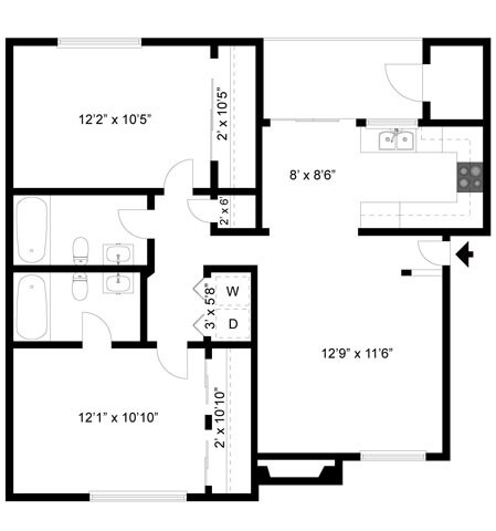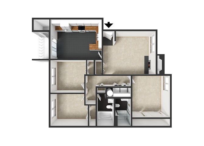 Modelo de apartamento: ArlingtonDesde $1,6991 Dormitorio, 1 Baño, 700 sq ftDisponible Ahora![]()