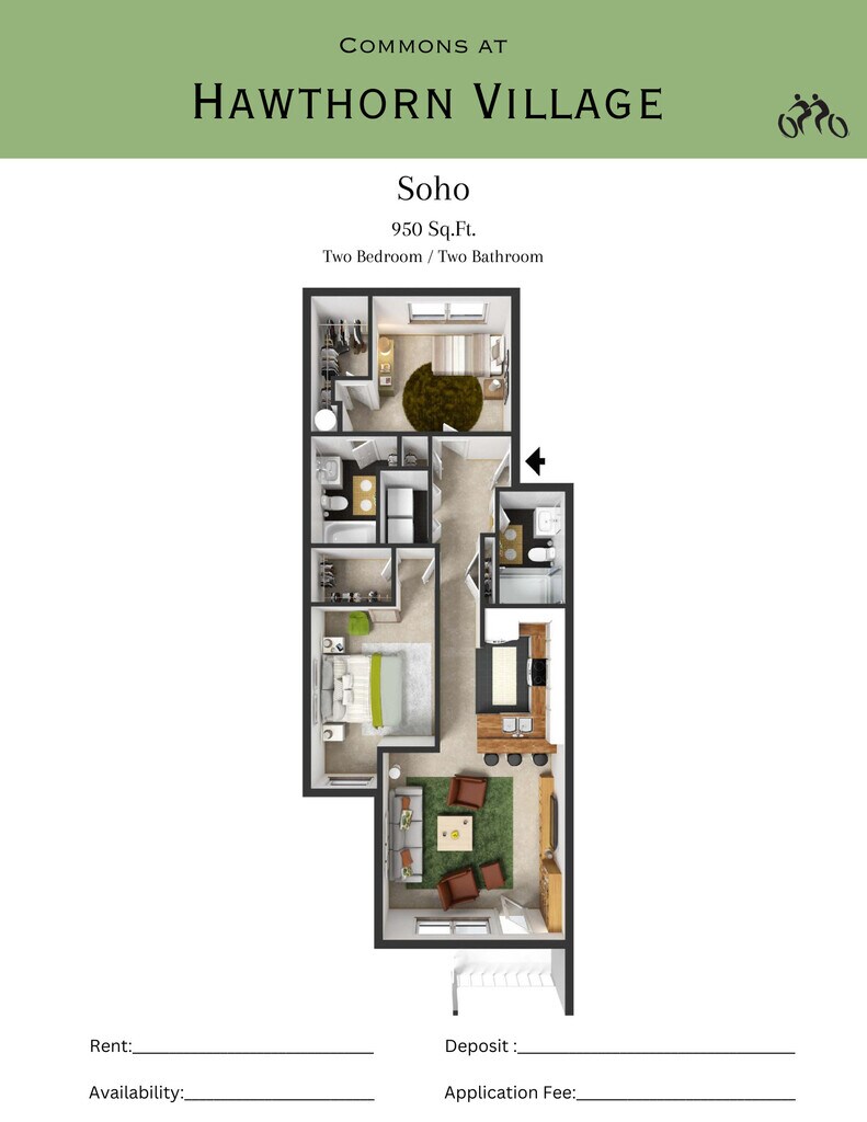 Commons at Hawthorn Village Apartments ofrece apartamentos de 1 a 3 Dormitorios desde $1,549 con 627–1,225 pies cuadrados. Aquí está el precio actual y la disponibilidad: