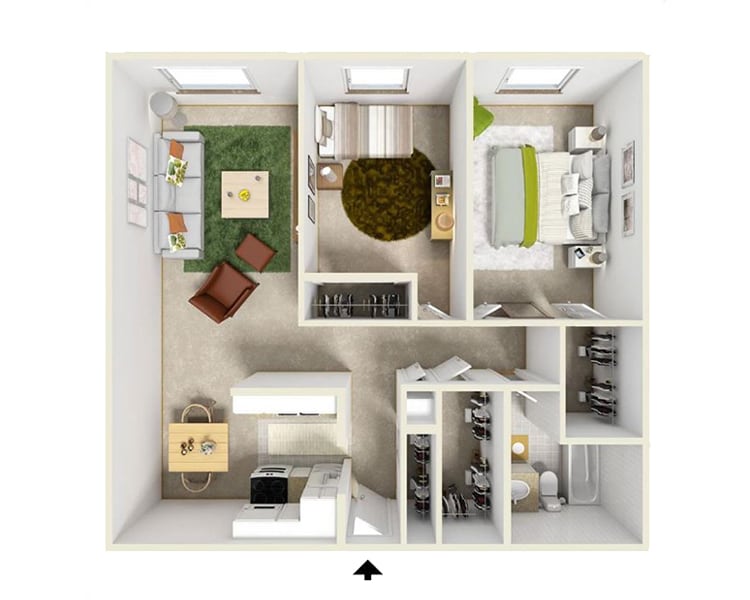 Modelo de apartamento: The OrdwayLlame para Precios2 Dormitorios, 1 Baño, 950 sq ftNo Disponible![]()
