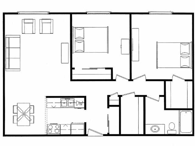 2 Dormitorios, 1 Baño, 950 pies²Galería del Modelo