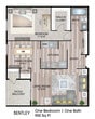 1 Dormitorio, 1 Baño, 840 pies²Galería del Modelo
