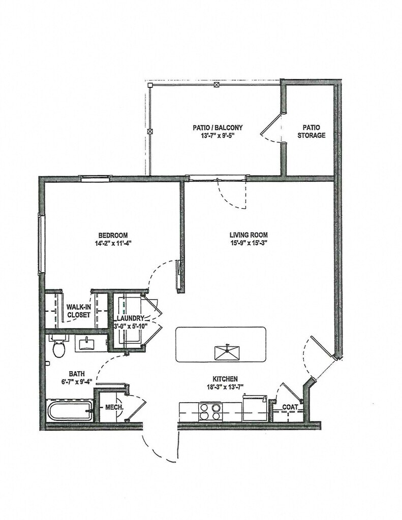 1 Dormitorio, 1 Baño, 738 pies²Galería del Modelo