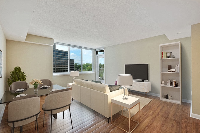 Concord Crystal City ofrece apartamentos de Estudio a 2 Dormitorios desde $2,056 con 532–1,332 pies cuadrados. Aquí está el precio actual y la disponibilidad: