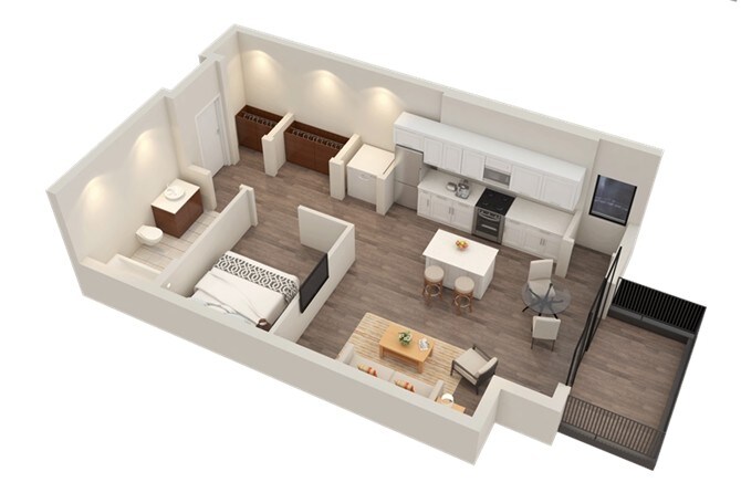 Modelo de apartamento: AgateDesde $927Estudio, 1 Baño, 433 sq ftDisponible Ahora![]()