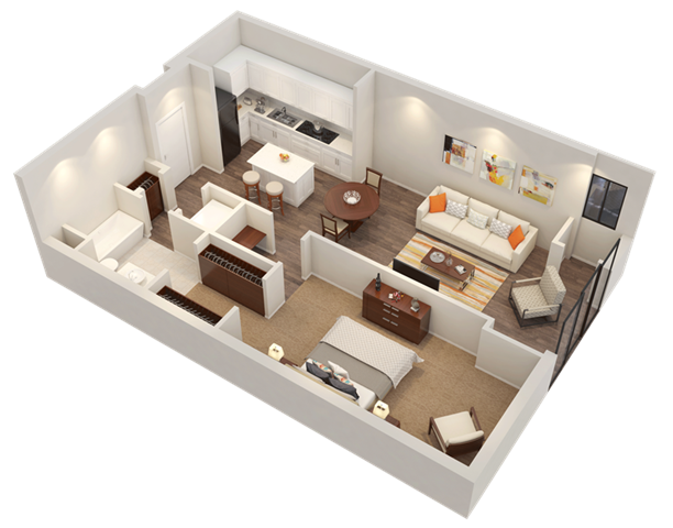 Estudio, 1 Baño, 576-596 pies²Disponible AhoraEl más grandeEsta opción tiene las unidades más grandes para este modeloGalería del Modelo