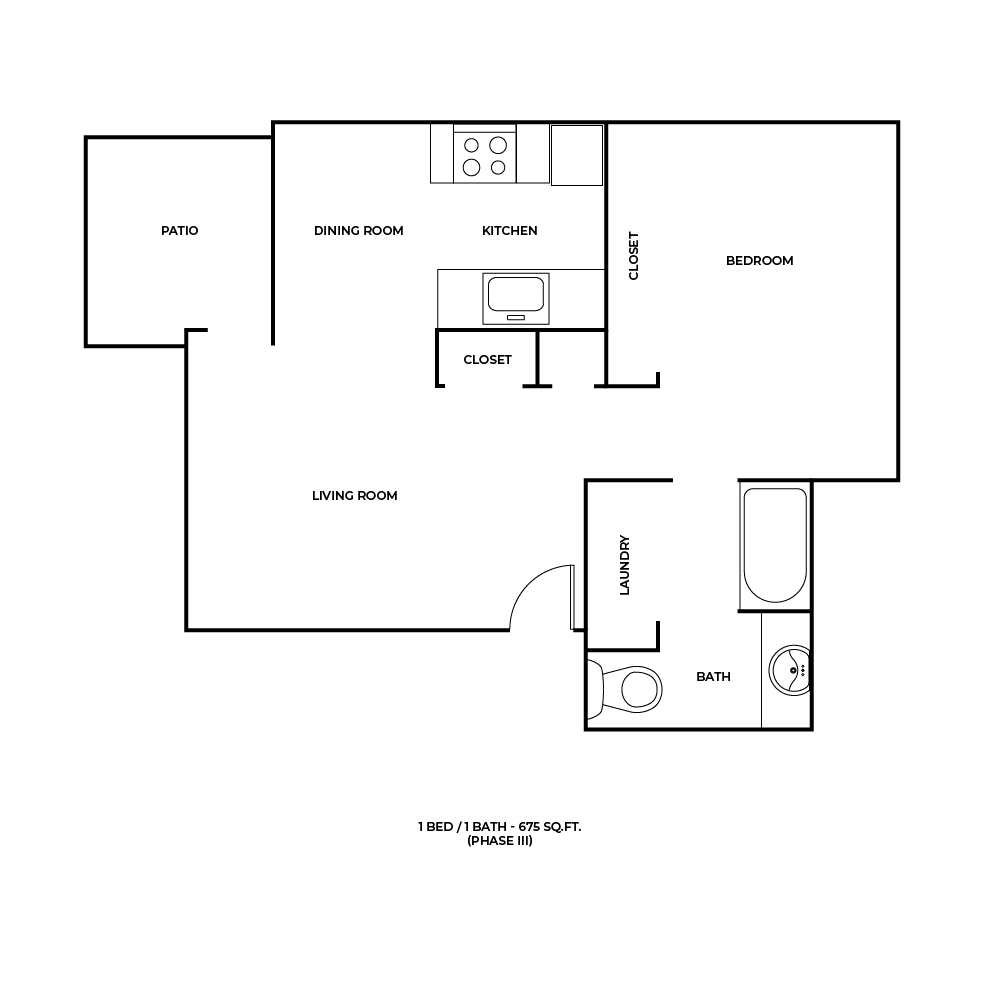 1 Dormitorio, 1 Baño, 675 pies²Galería del Modelo