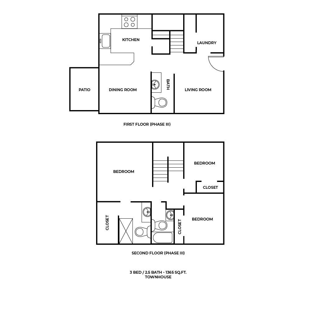 3 Dormitorios, 2.5 Baños, 1365 pies²Galería del Modelo