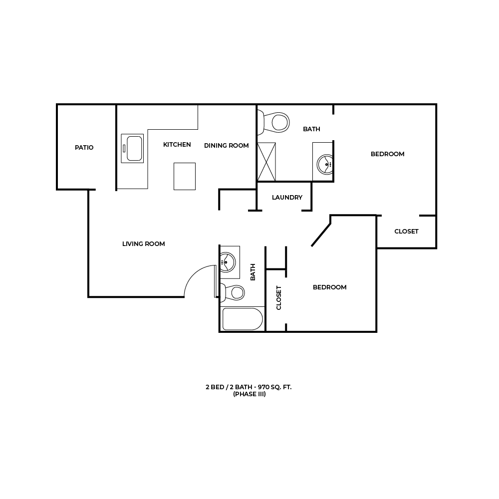 2 Dormitorios, 2 Baños, 970 pies²Galería del Modelo