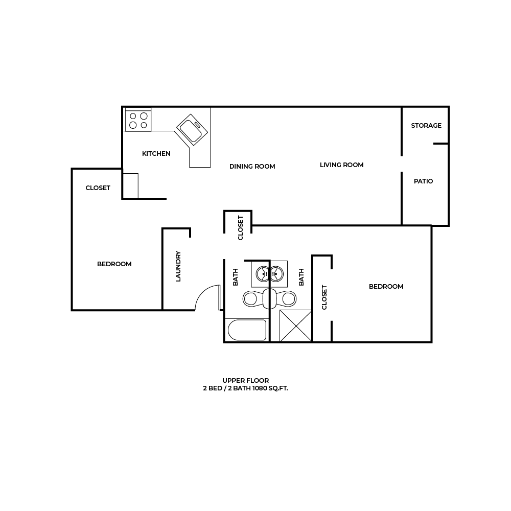 2 Dormitorios, 2 Baños, 1080 pies²Disponible AhoraGalería del Modelo