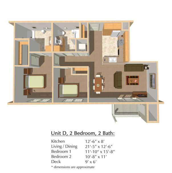 Modelo de apartamento: D12 Dormitorios, 2 Baños, 1100-1150 sq ftNo Disponible![]()