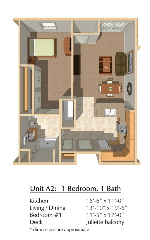 1 Dormitorio, 1 Baño, 638-998 pies²Disponible AhoraGalería del Modelo