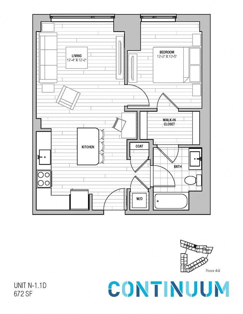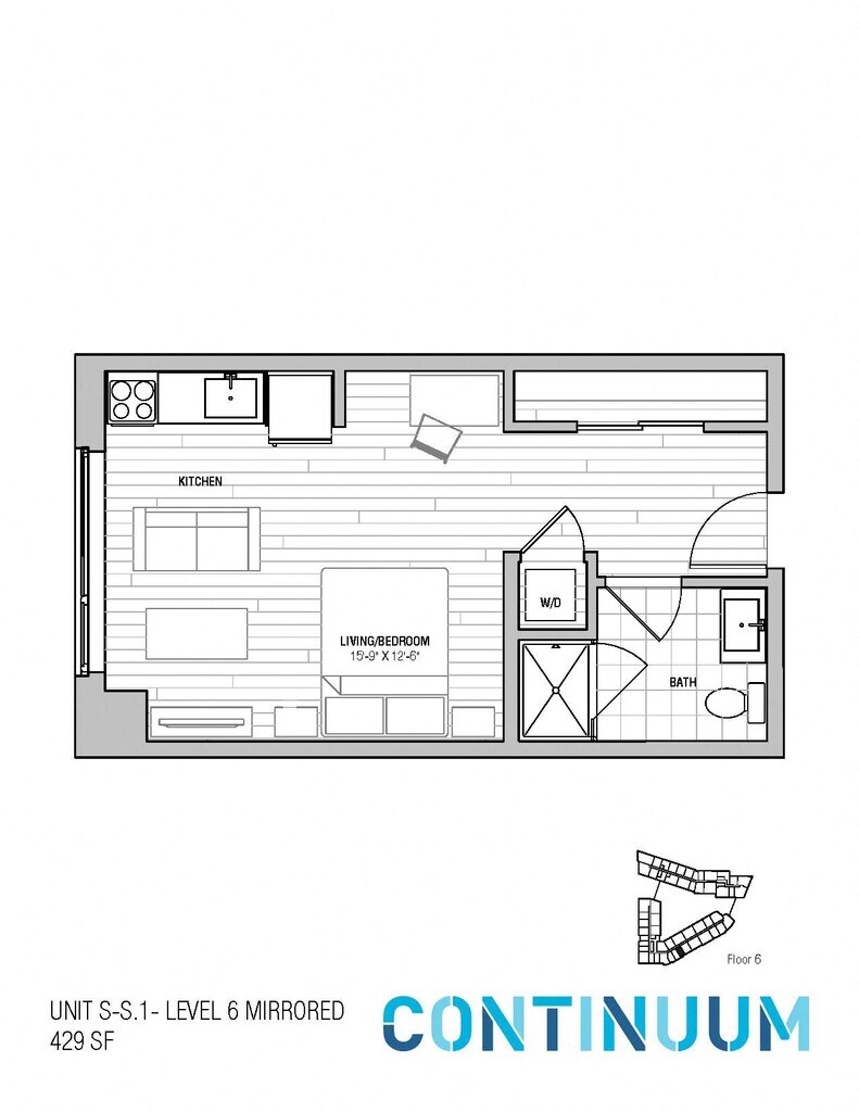North Studio - Plano Unidad de apartamento: N209Modelo de apartamento: North Studio$2,786Estudio, 1 Baño, 448 sq ftDisponible Ahora![]()