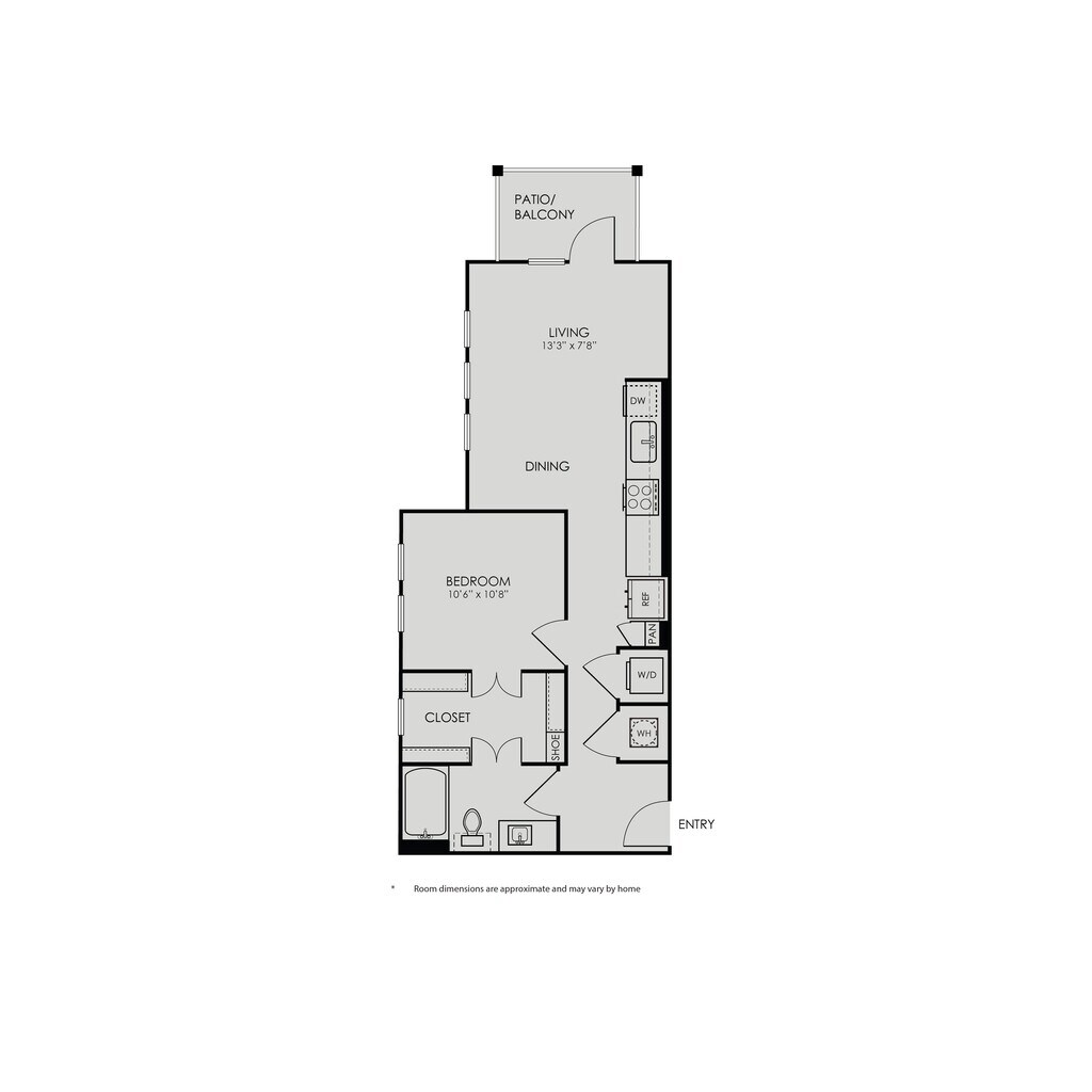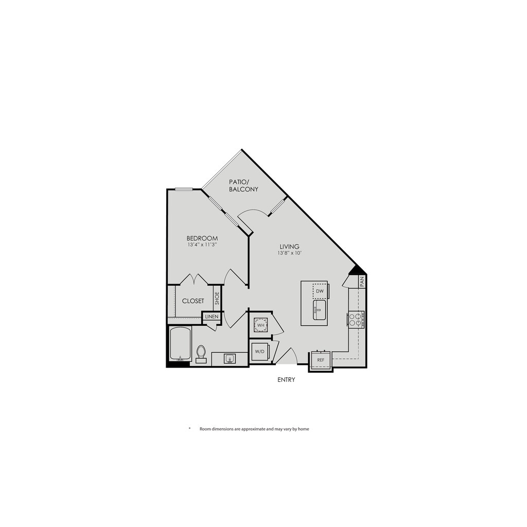 Modelo de apartamento: S1ALlame para PreciosEstudio, 1 Baño, 590 sq ftNo DisponibleS1A - Plano 1 1 Dormitorio