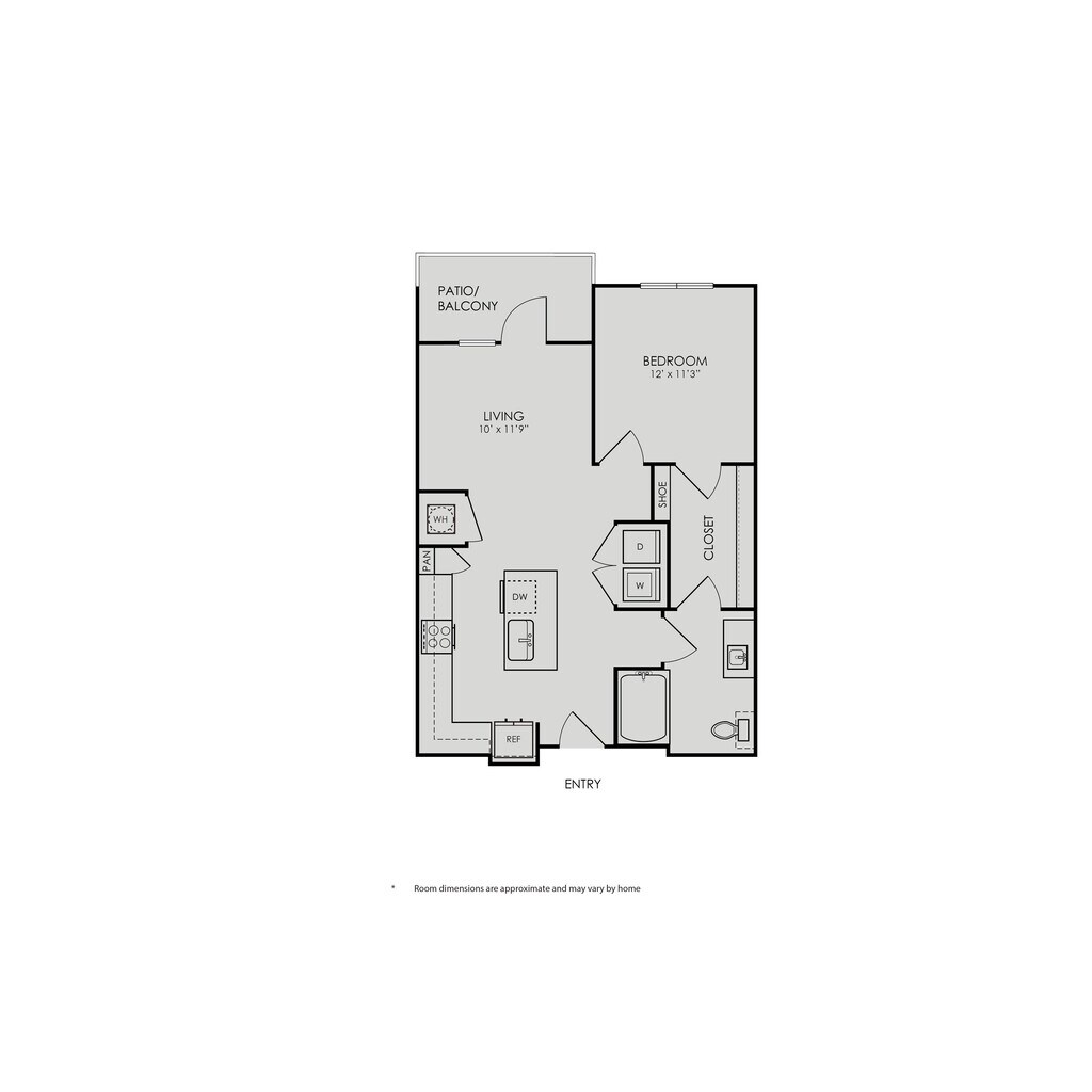 Modelo de apartamento: A1ALlame para Precios1 Dormitorio, 1 Baño, 742 sq ftNo DisponibleA1A - Plano 1 A1.1