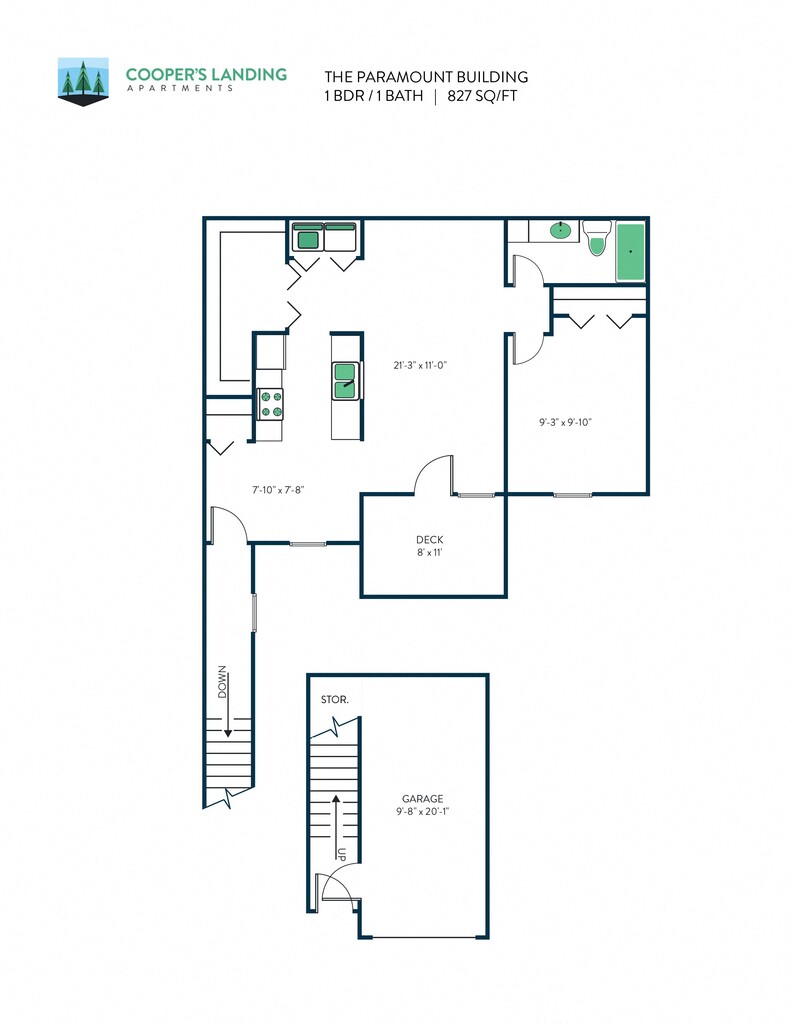 1 Bed, 1 Bath - 725 sq ft - Plano 1 1 Bed, 1 Bath - 827 sq ft
