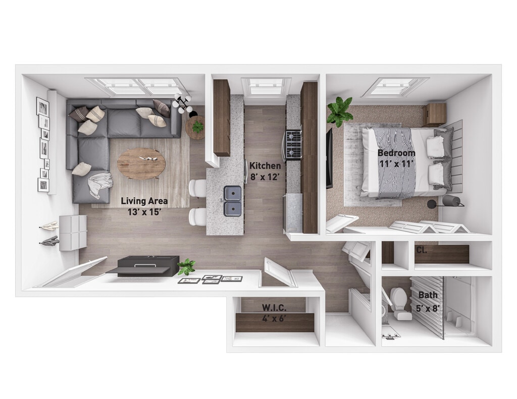 2 Dormitorios, 1 Baño, 713 pies²Disponible AhoraGalería del Modelo