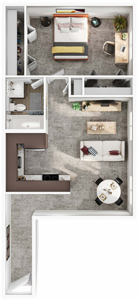 1 Dormitorio, 1 Baño, 590 pies²Disponible August 19, 2026Galería del Modelo