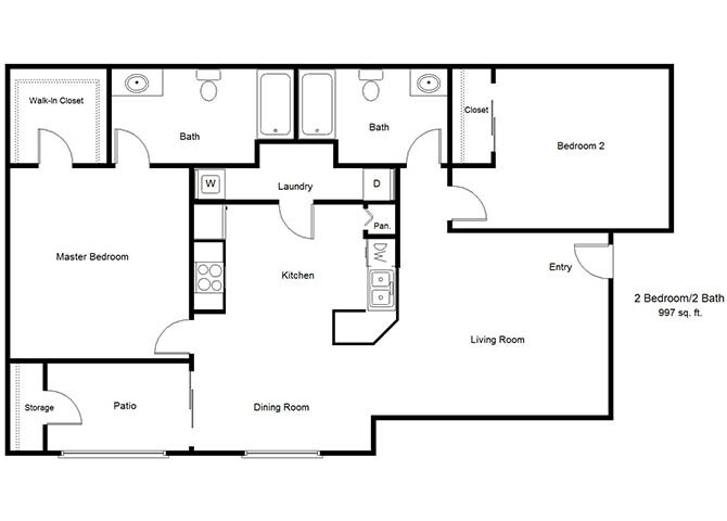 2 Dormitorios, 2 Baños, 997 pies²Disponible AhoraGalería del Modelo