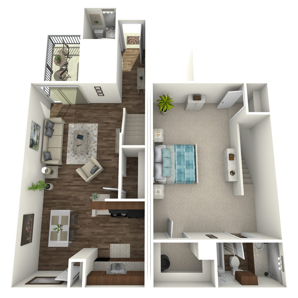 Modelo de apartamento: 1 Bedroom 1 Bathroom TownhomeLlame para Precios1 Dormitorio, 1 Baño, 757 sq ftNo Disponible1 Bedroom 1 Bathroom Townhome - Plano 1 1 Bedroom 1.5 Bathroom Townhome