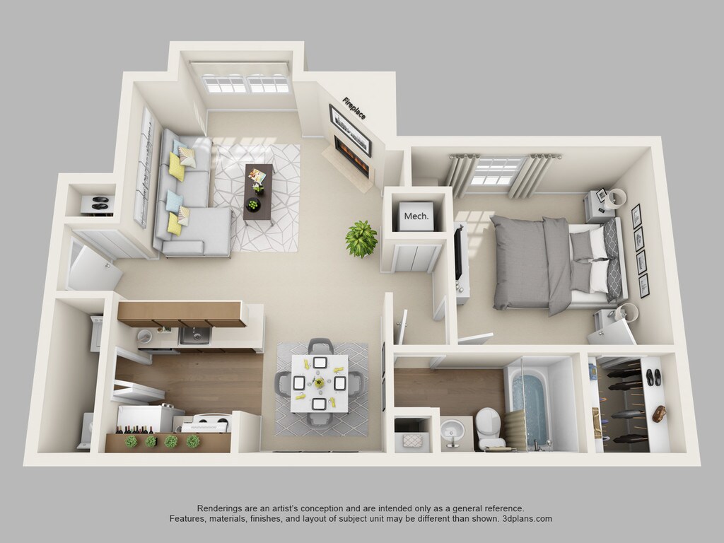 1 Dormitorio, 1 Baño, 681 pies²Disponible AhoraGalería del Modelo