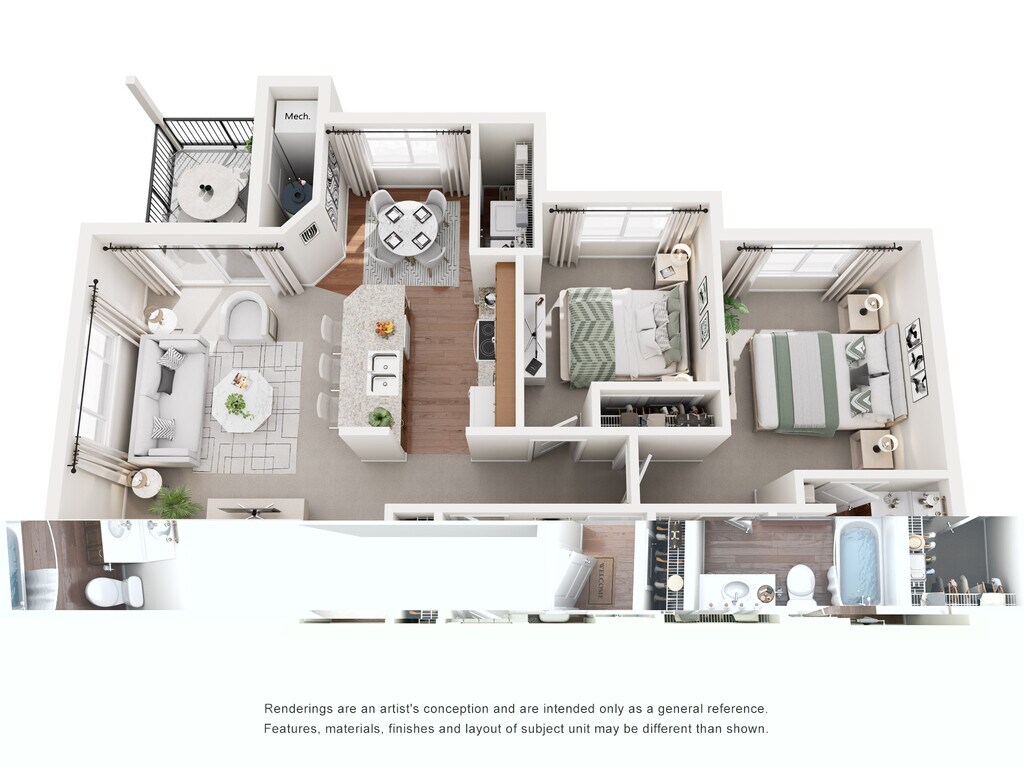 2 Dormitorios, 2 Baños, 1025 pies²Disponible AhoraGalería del Modelo