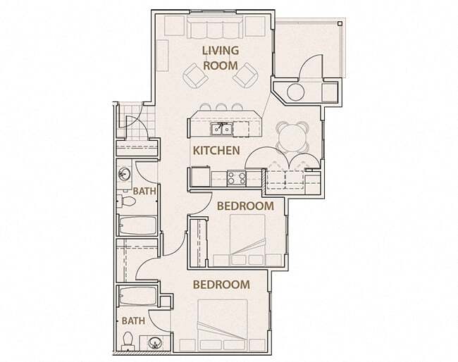 Modelo de apartamento: AspenLlame para Precios2 Dormitorios, 2 Baños, 1025 sq ftDisponible Ahora![]()