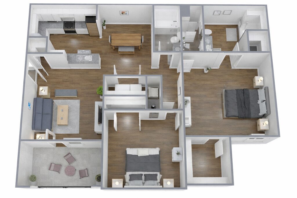 Modelo de apartamento: 3 Bed 2 BathDesde $1,6753 Dormitorios, 2 Baños, 1118 sq ftDisponible May 7, 2026![]()