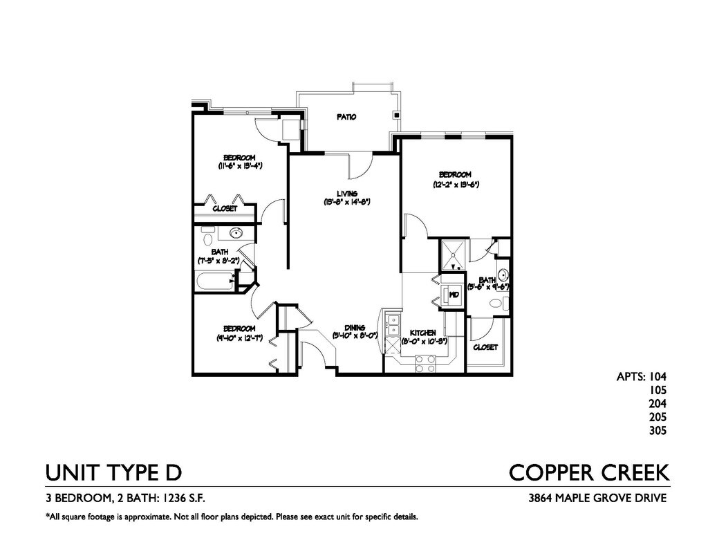 D - Plano 2 Unidad de apartamento: 204Modelo de apartamento: D$1,9452 Dormitorios, 2 Baños, 1236 sq ftDisponible AhoraPlano: C2