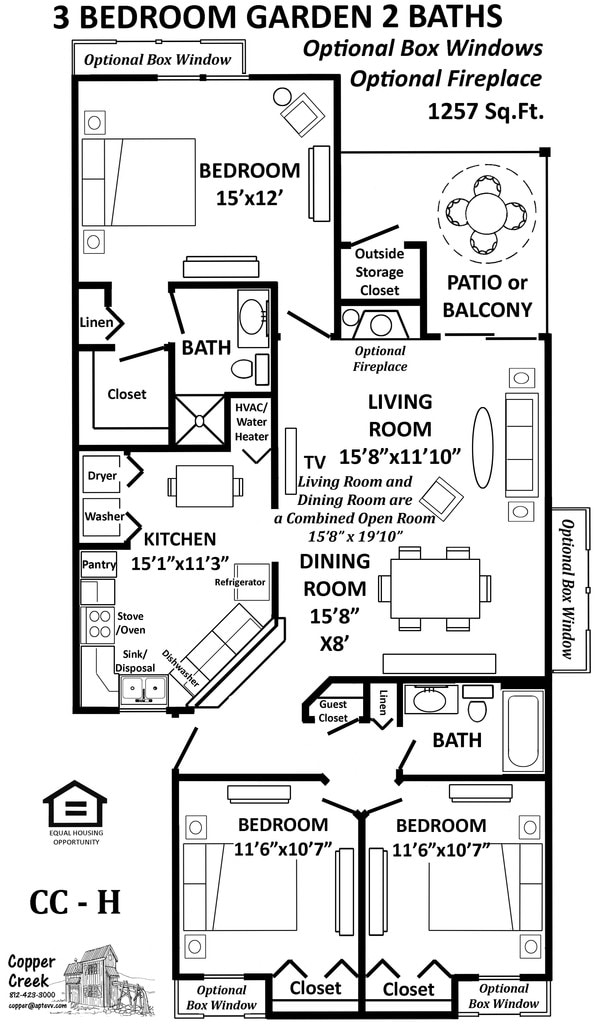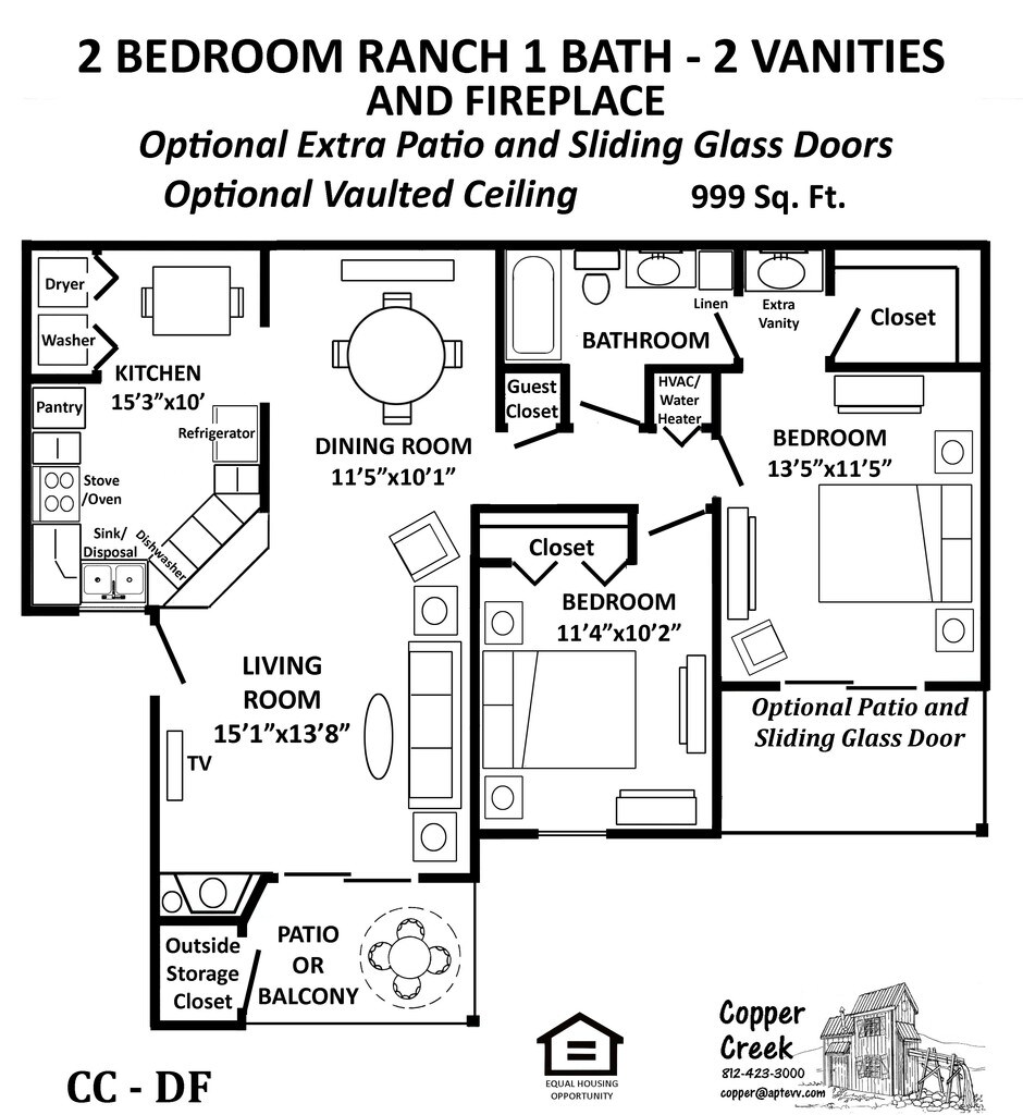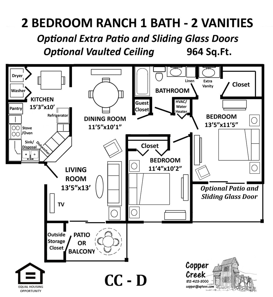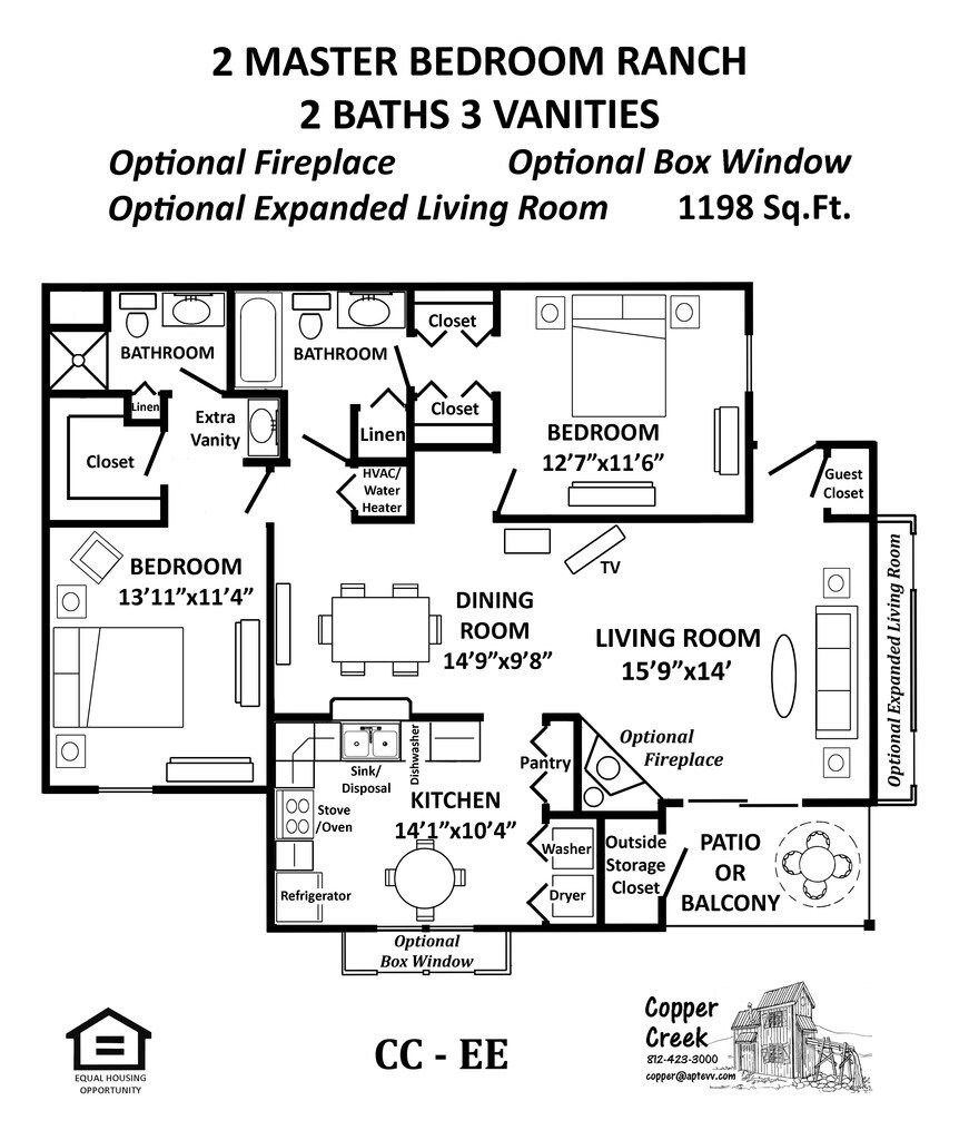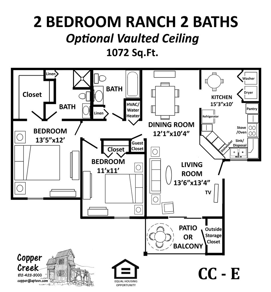 Vive como dreamed...Live...Create...Dream en Copper Creek, ubicado en la zona oeste. Cerca de la autopista Lloyd, tiendas, el centro de Evansville, y de la Universidad de Southern Indiana. Este complejo bellamente diseñado que ver para creer! En Copper Creek, los servicios contribuyen. Tú recibe GRATUITO, TV por cable clásica ($600 Value) y agua GRATUITO ($300-$600 baja). Ven a ver lo que ahorrarás al vivir en Copper Creek.