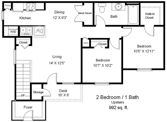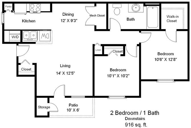 2 Dormitorios, 1 Baño, 916-992 pies²Galería del Modelo