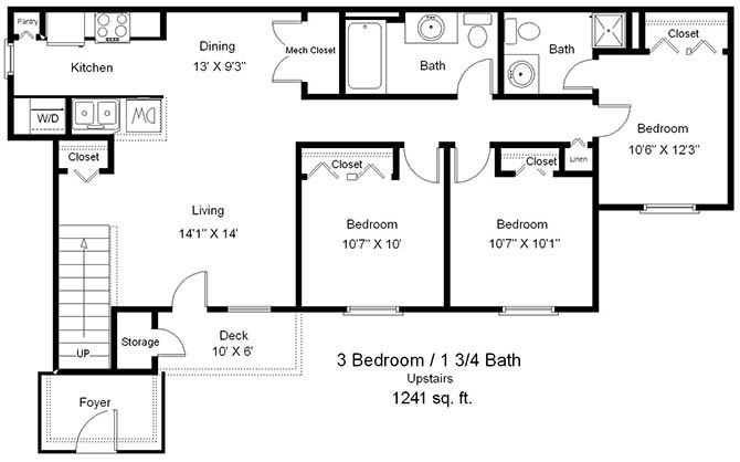 3 Dormitorios, 2 Baños, 1241 pies²Galería del Modelo