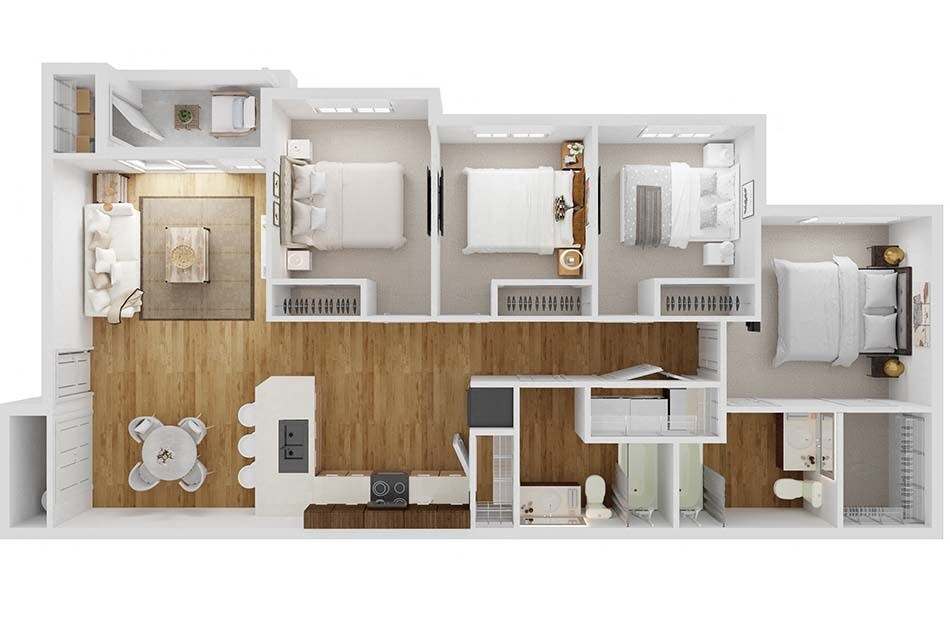 3 Dormitorios, 2 Baños, 1123 pies²Galería del Modelo