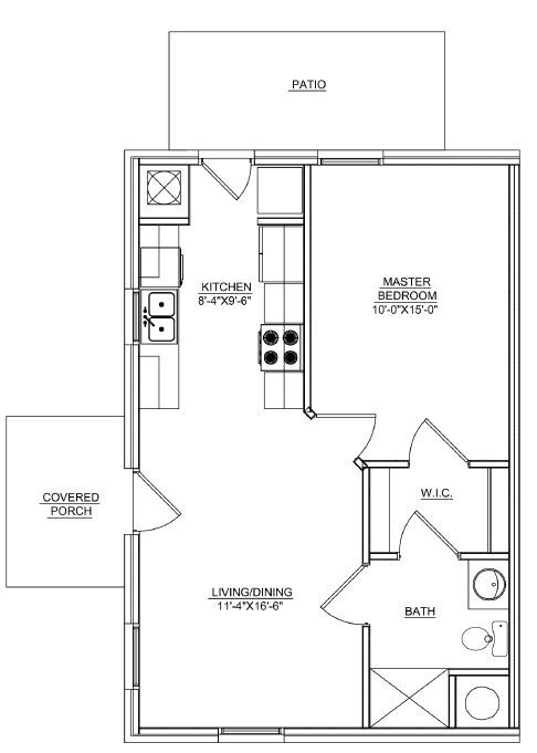 1 Dormitorio, 1 Baño, 600 pies²Galería del Modelo